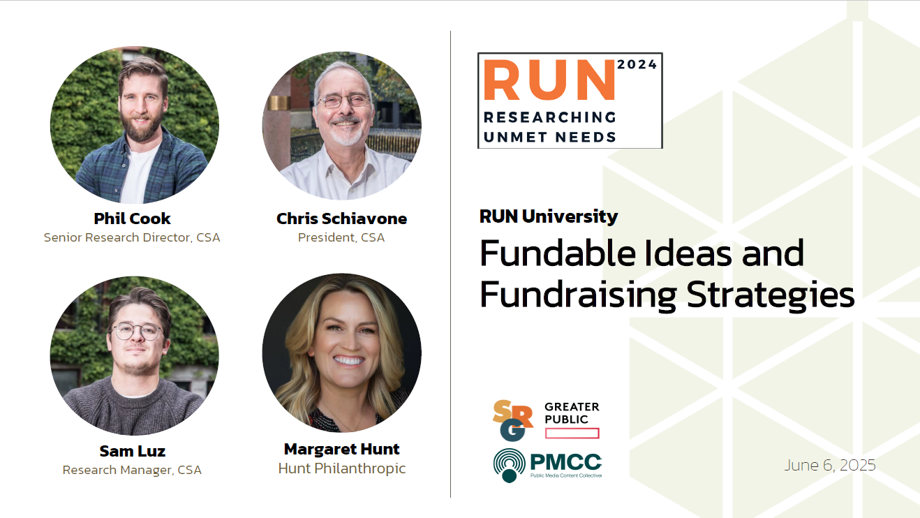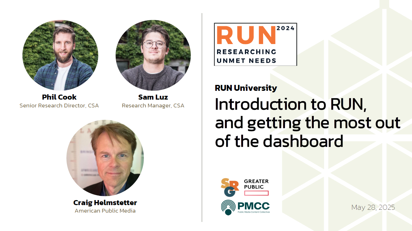 Explore our online webinars and resources to gain deeper insights into the RUN data and how it can inform your strategies in fundraising, marketing, and music and news programming.